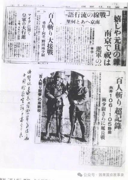 1937年12月13日,《东京日日新闻》报道了日军“片桐部队”的向井敏明、野田岩两名军官在南京紫金山一带进行杀人比赛的消息。